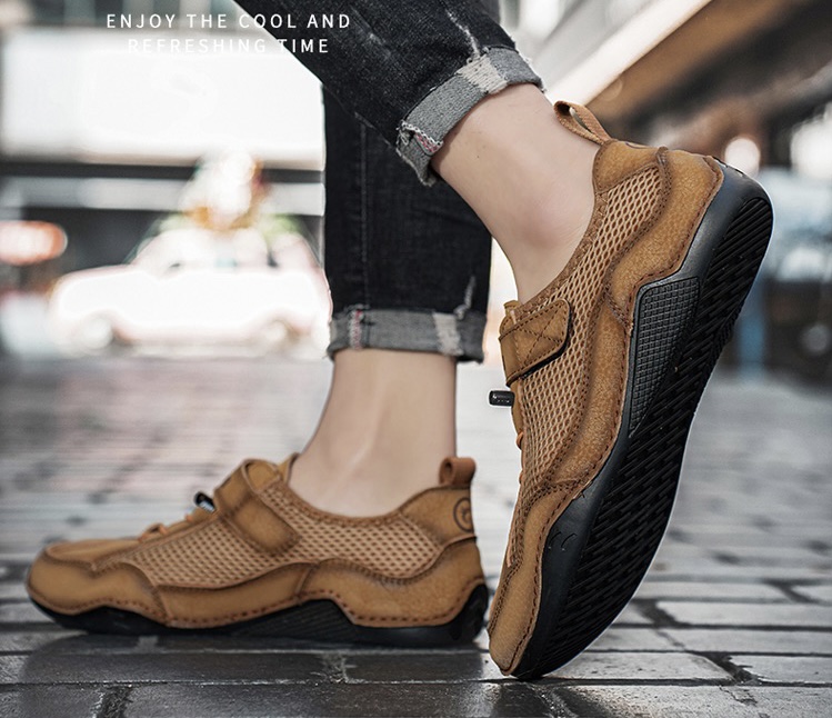 Our breathable mesh leather shoes are designed with easy-to-use Velcro straps, providing the perfect combination of convenience and comfort.