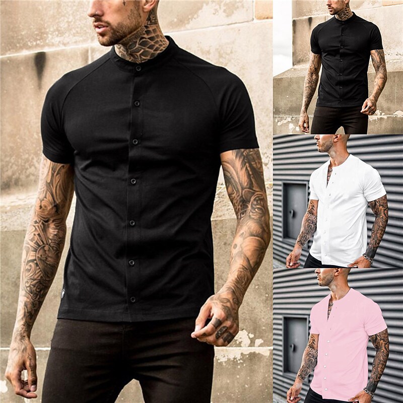 Men's Casual Shirt Solid Color Stand Collar Street Casual Button-Down