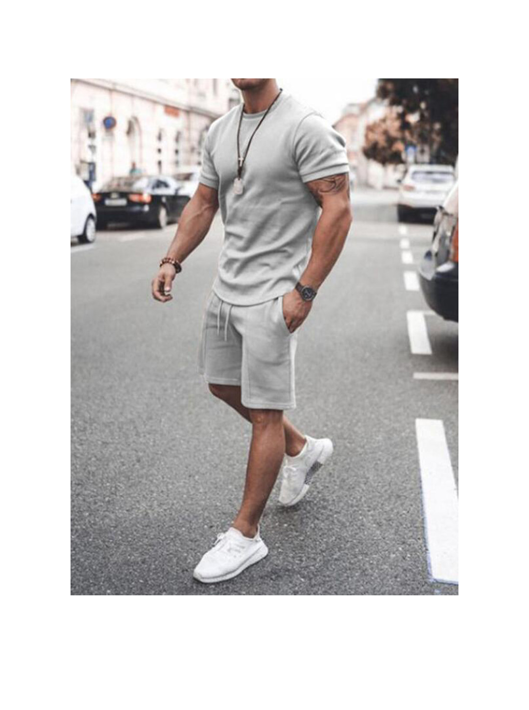 Men's Solid Color Fitness Tracksuit Short Sleeve Shorts Two-Piece Set Gym Suits
