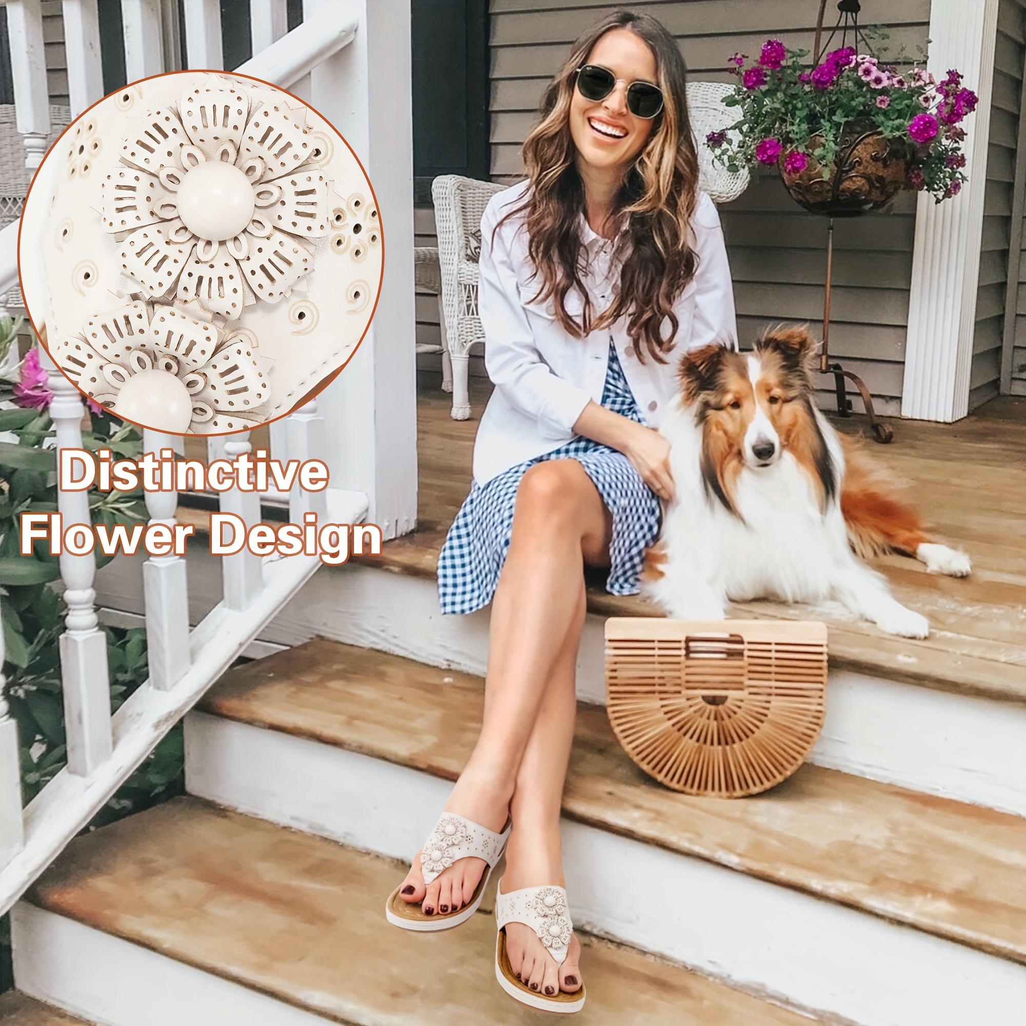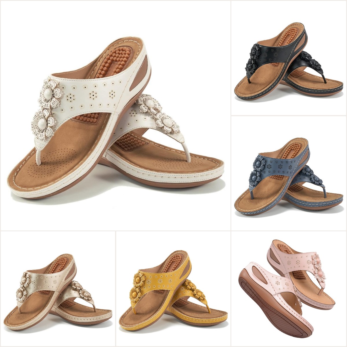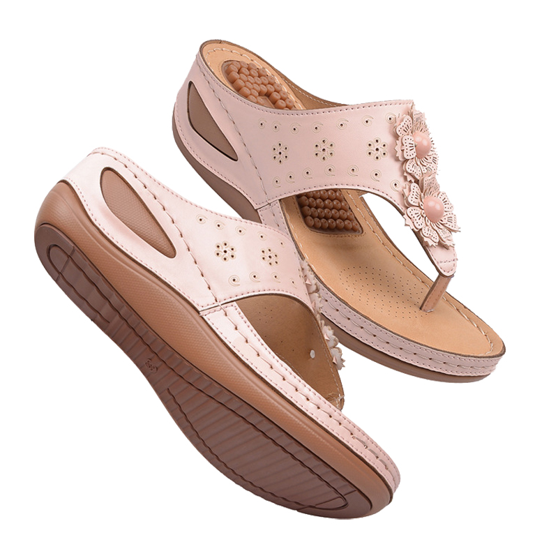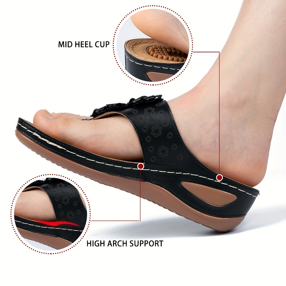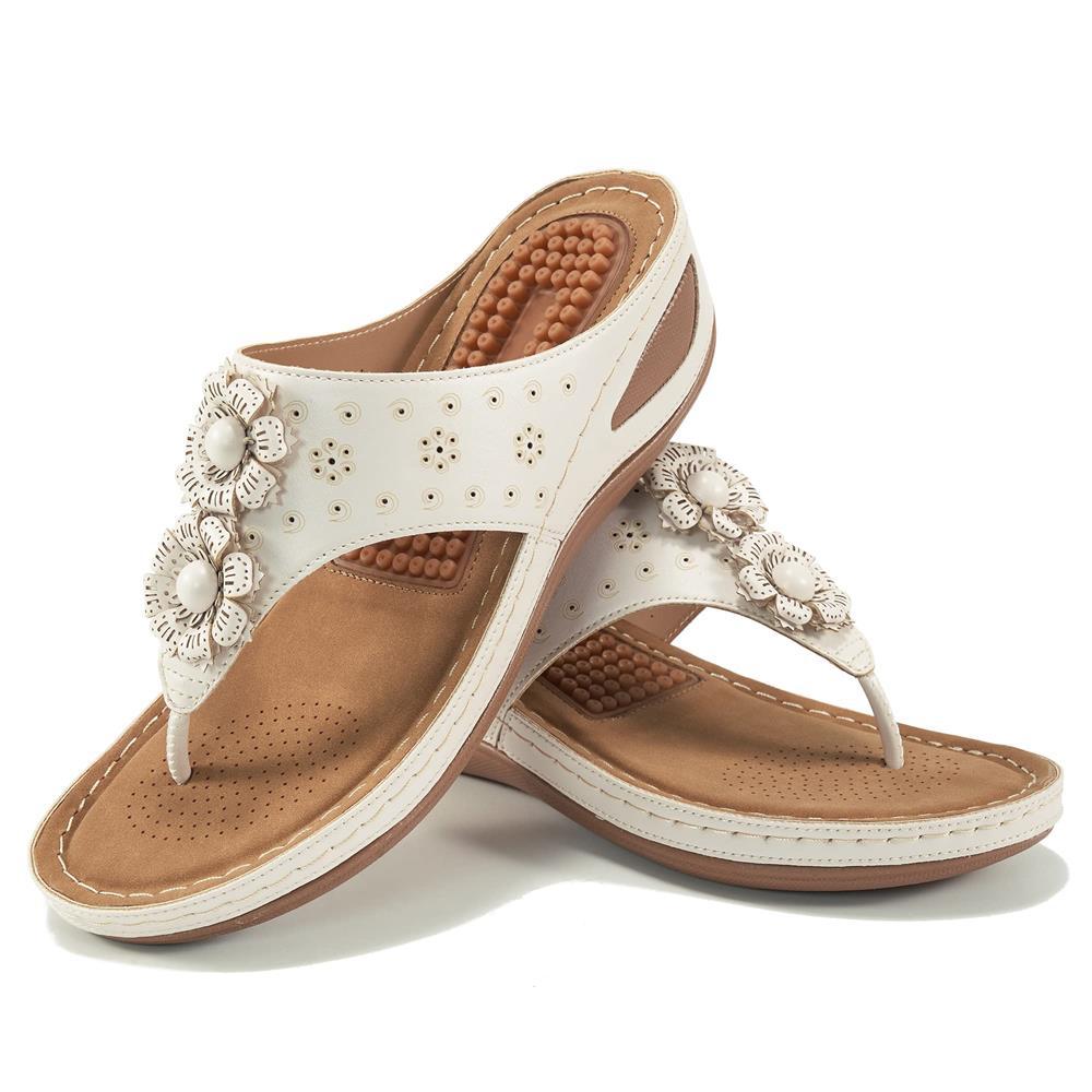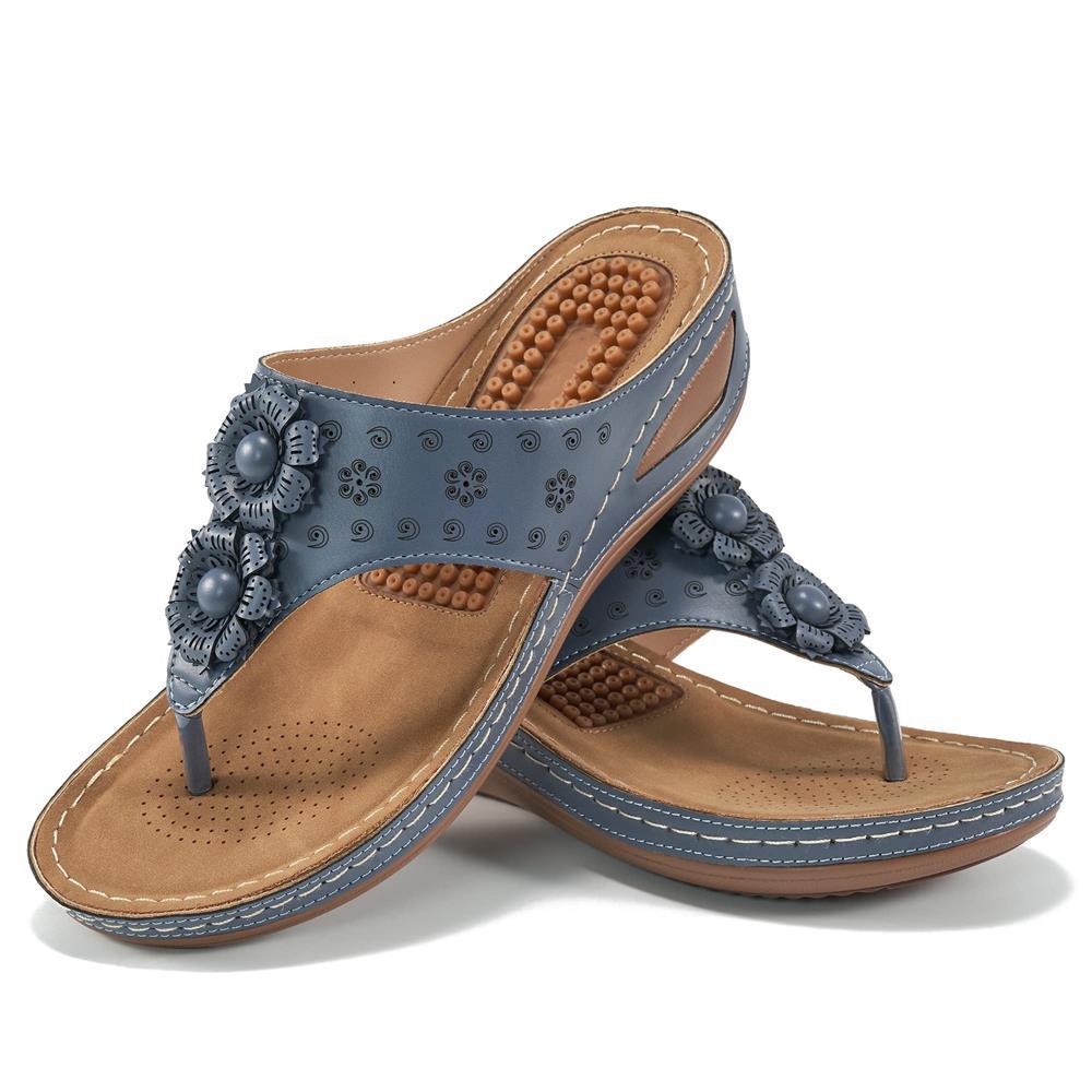 Women's Massage Floral Decoration Non-slip Wedge Sandals, Comfortable Arch Support Sandals